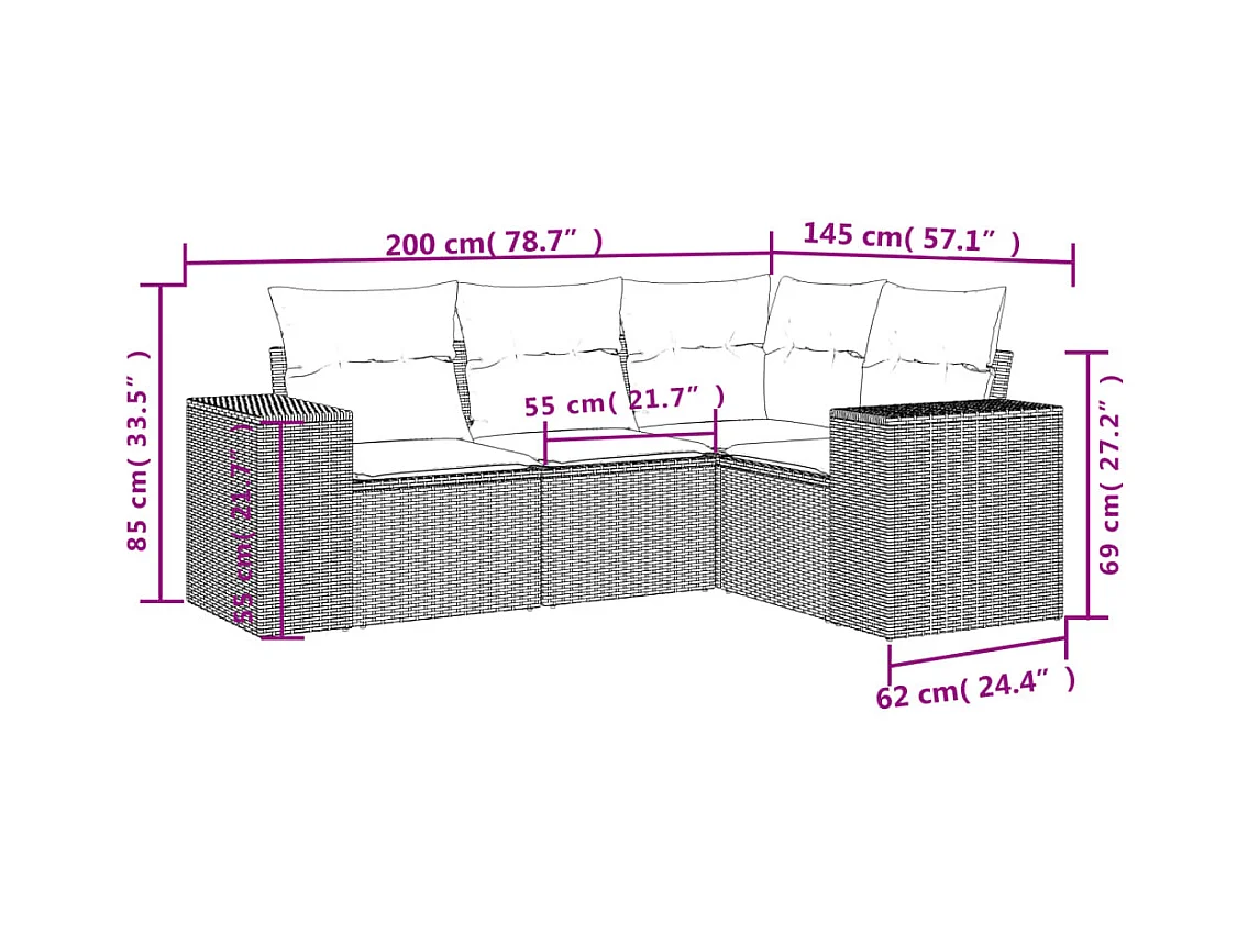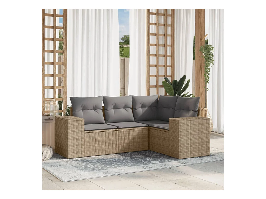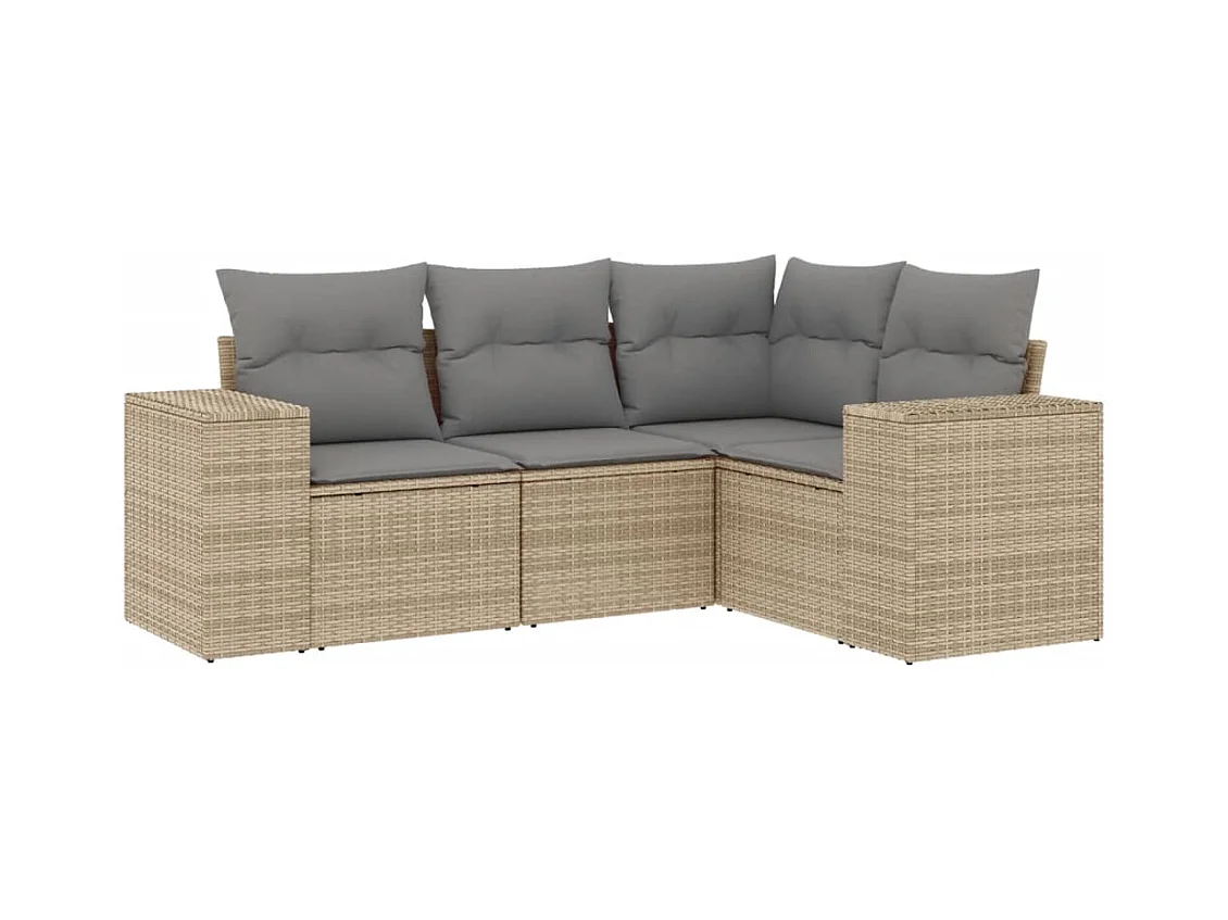 Mobile da giardino con cuscini 4 pz in resina intrecciata beige