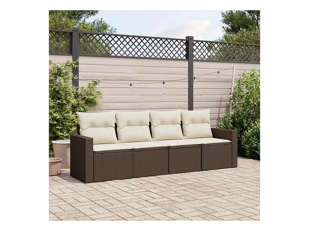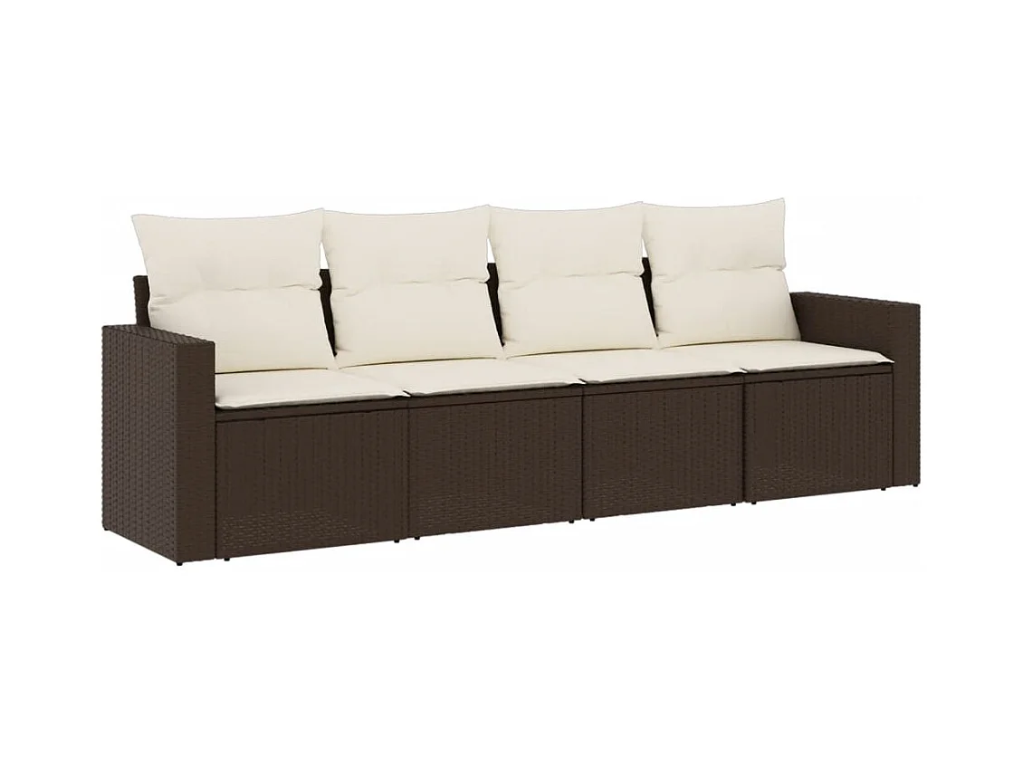 Mobili da giardino 4 pezzi con cuscini in resina intrecciata marrone