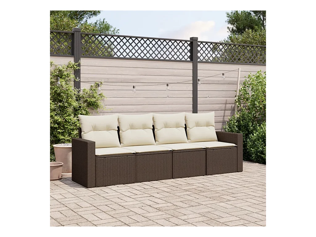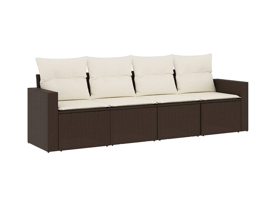 Set Divano da Giardino 4 pz con Cuscini Marrone in Polyrattan
