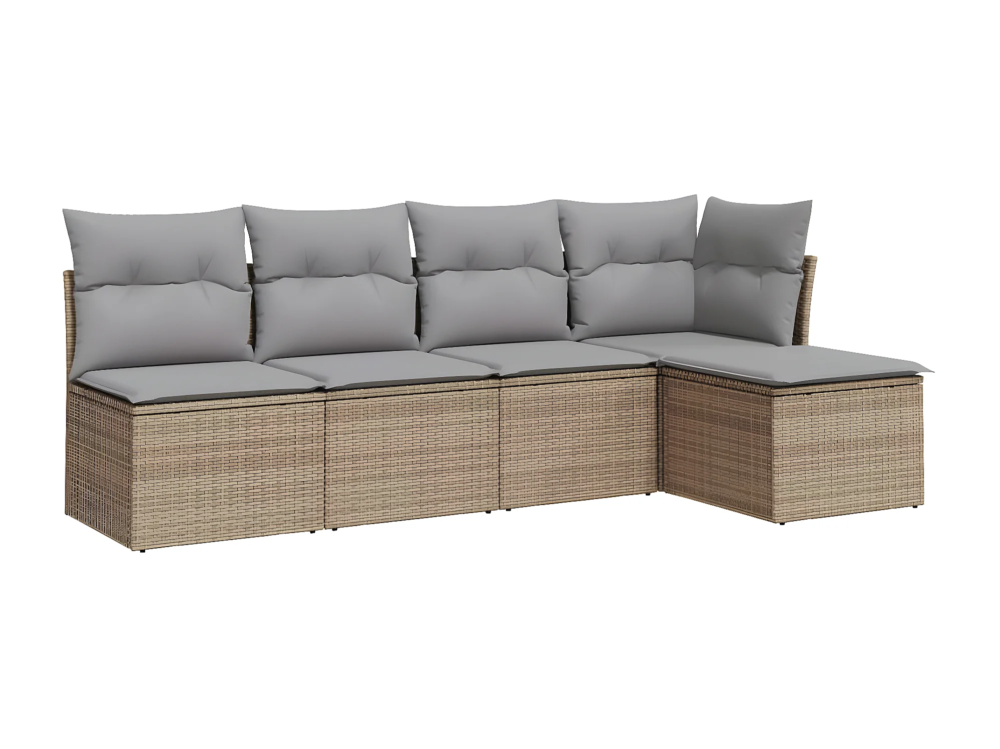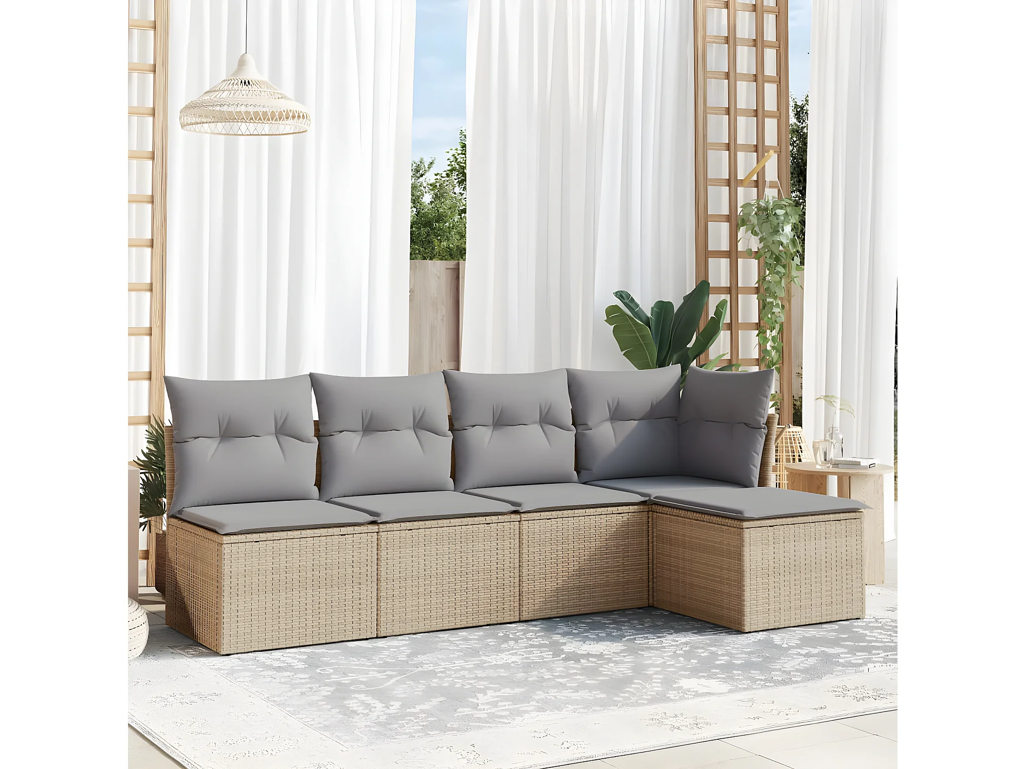 Set Divano da Giardino 5 pz con Cuscini Beige in Polyrattan