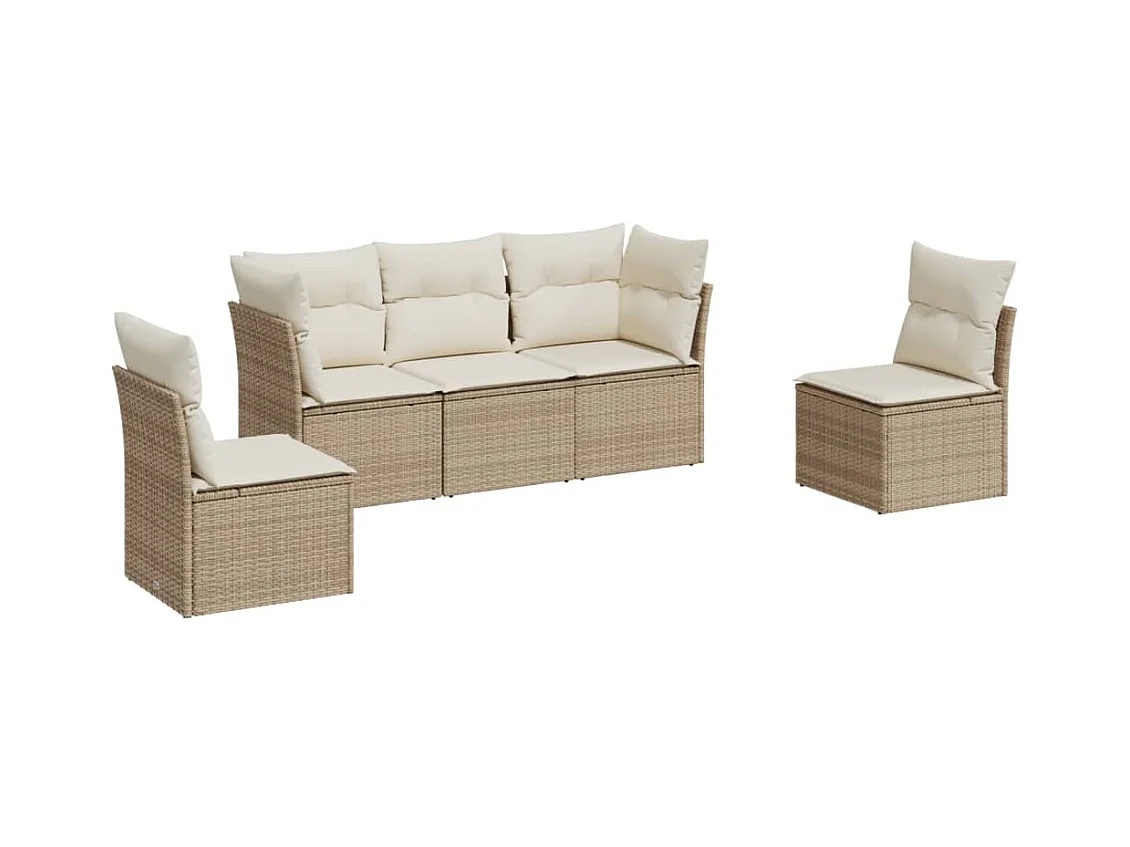 Set Divano da Giardino 5 pz con Cuscini Beige in Polyrattan