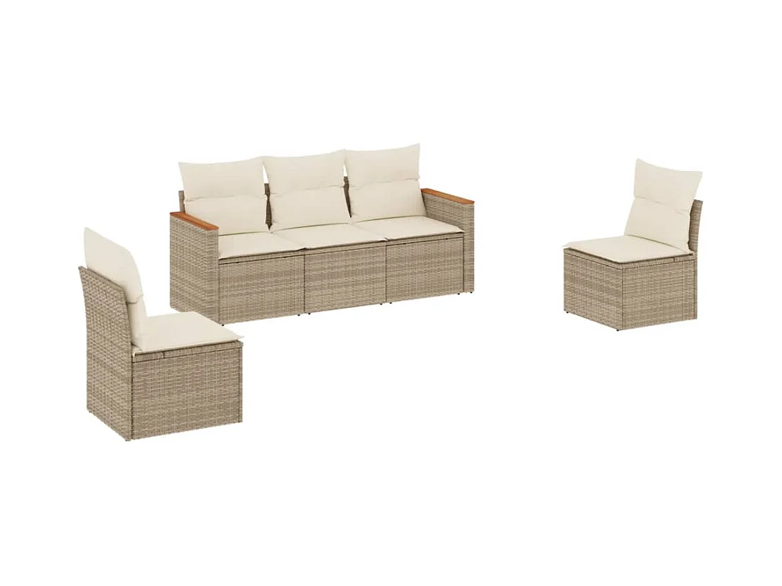Set Divano da Giardino 5 pz con Cuscini Beige in Polyrattan