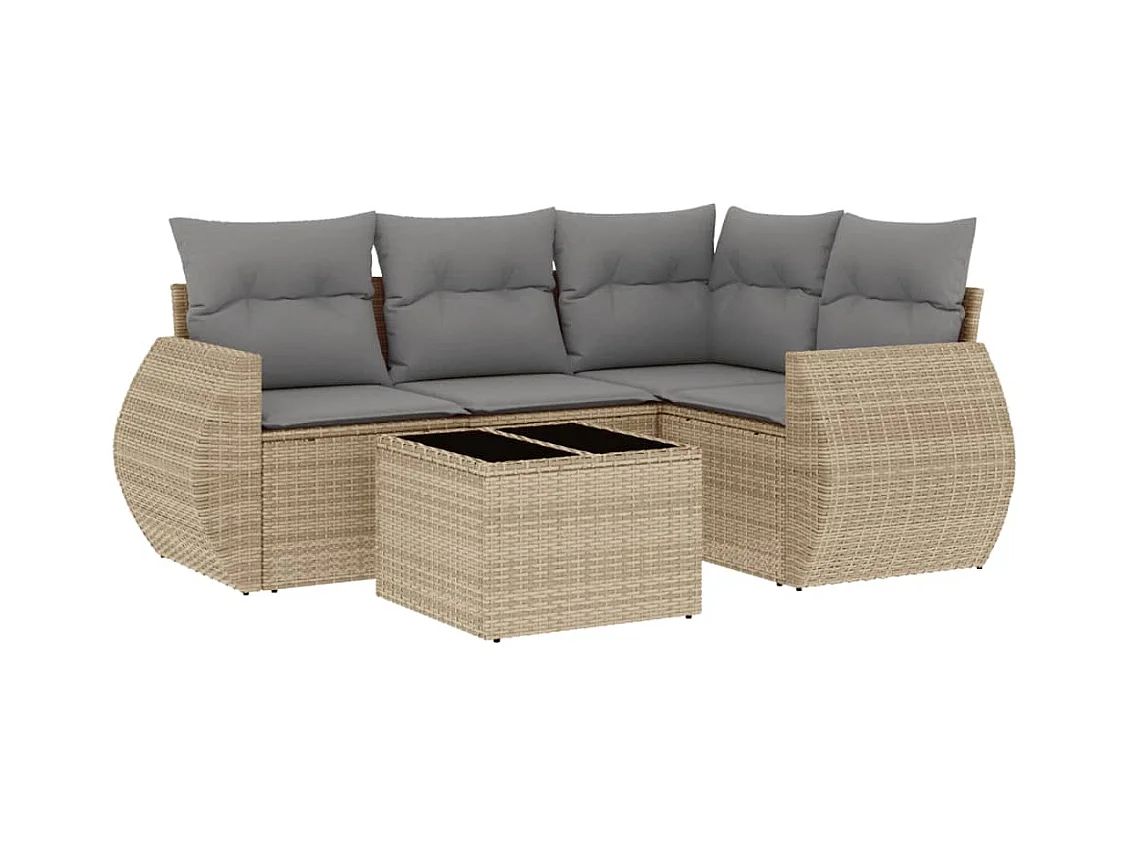 Set Divano da Giardino 5 pz con Cuscini Beige Misto Polyrattan