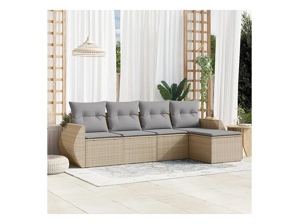 Set Divano da Giardino 5 pz con Cuscini Beige in Polyrattan
