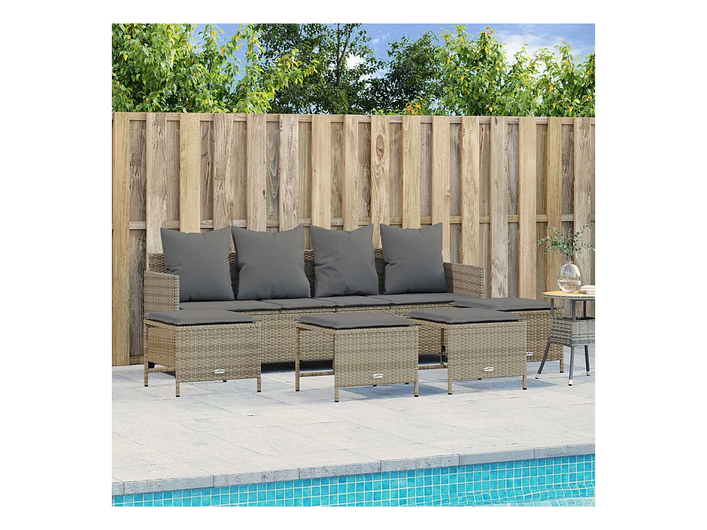 Set Divano da Giardino 5pz con Cuscini Grigio Chiaro Polyrattan