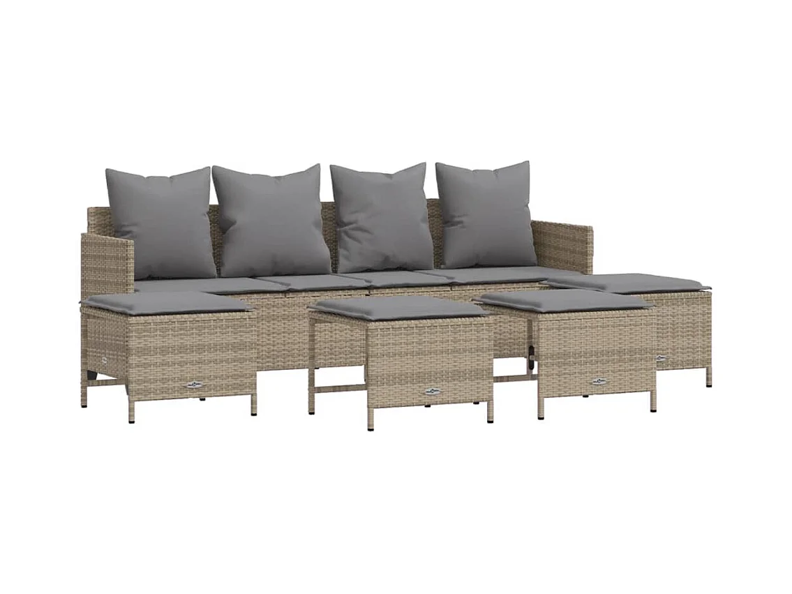 Set Divano da Giardino 5 pz con Cuscini Beige in Polyrattan