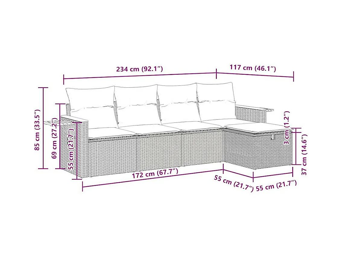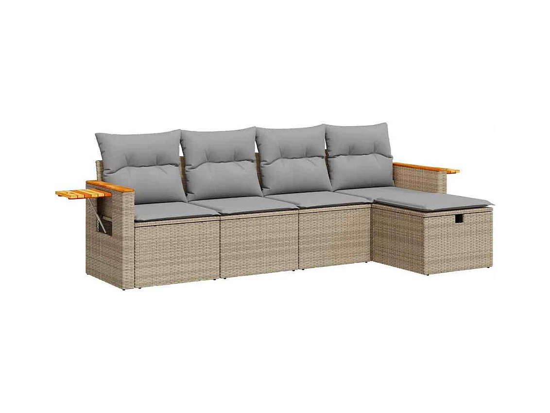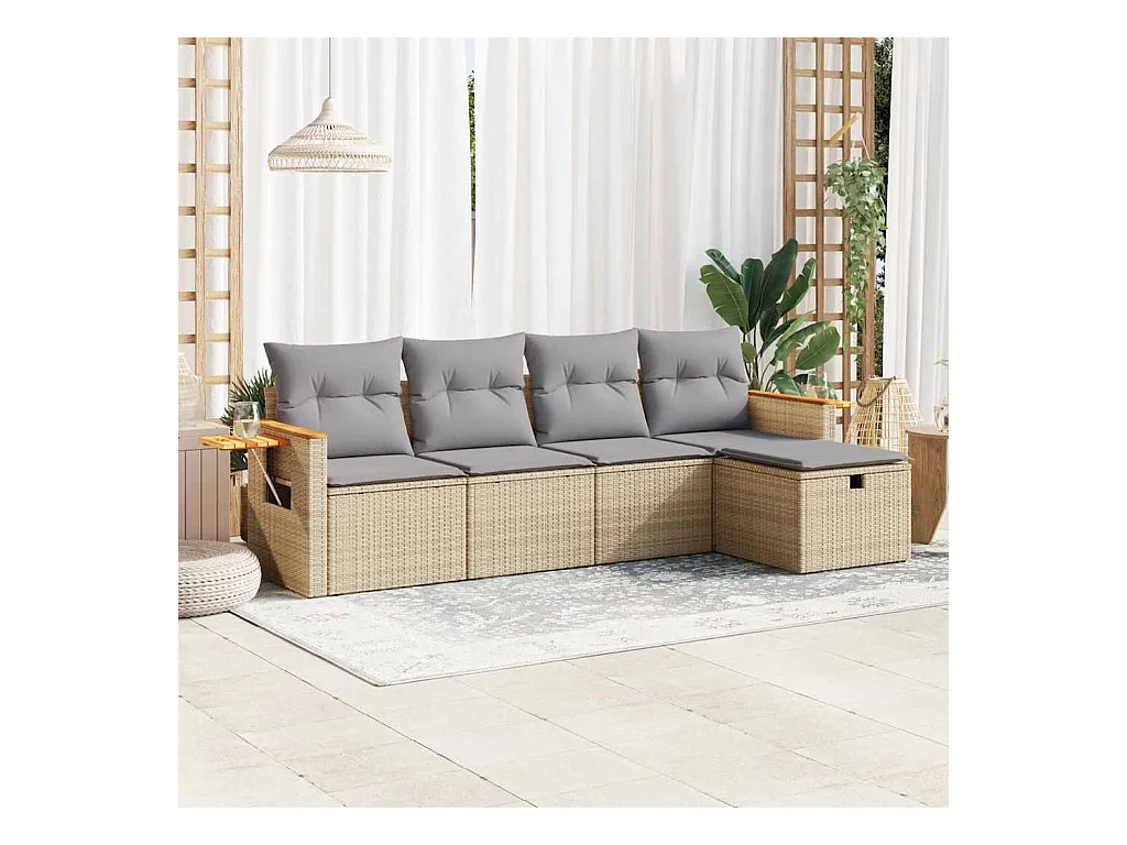 Set Divano da Giardino 5 pz con Cuscini Beige in Polyrattan