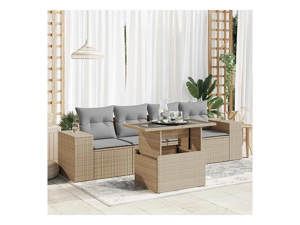 Set Divano da Giardino 5 pz con Cuscini Beige in Polyrattan