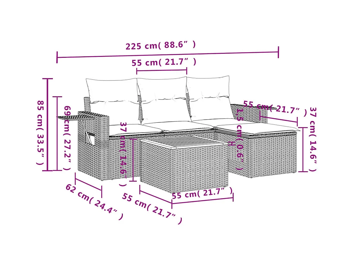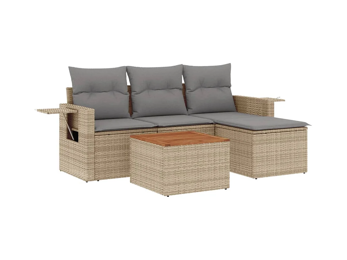 Set Divano da Giardino 5 pz con Cuscini Beige Misto Polyrattan