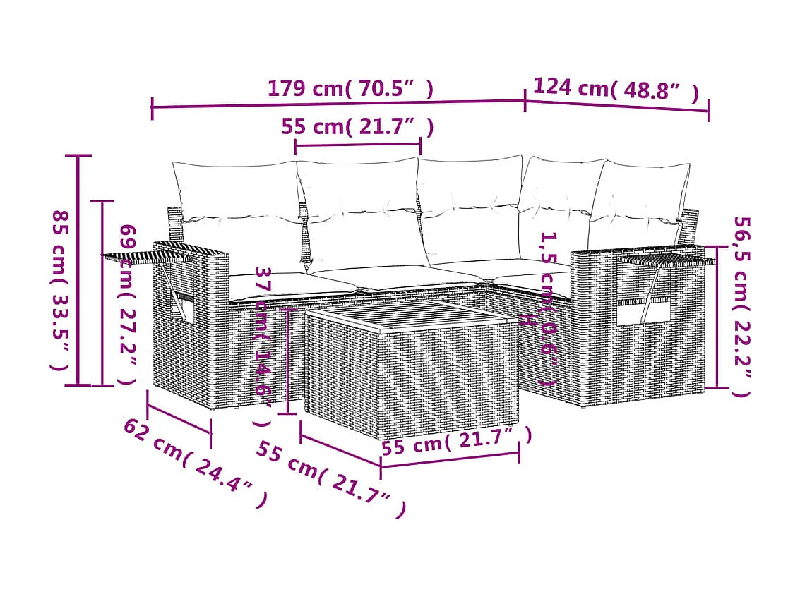 Set Divano da Giardino 5 pz con Cuscini Beige Misto Polyrattan