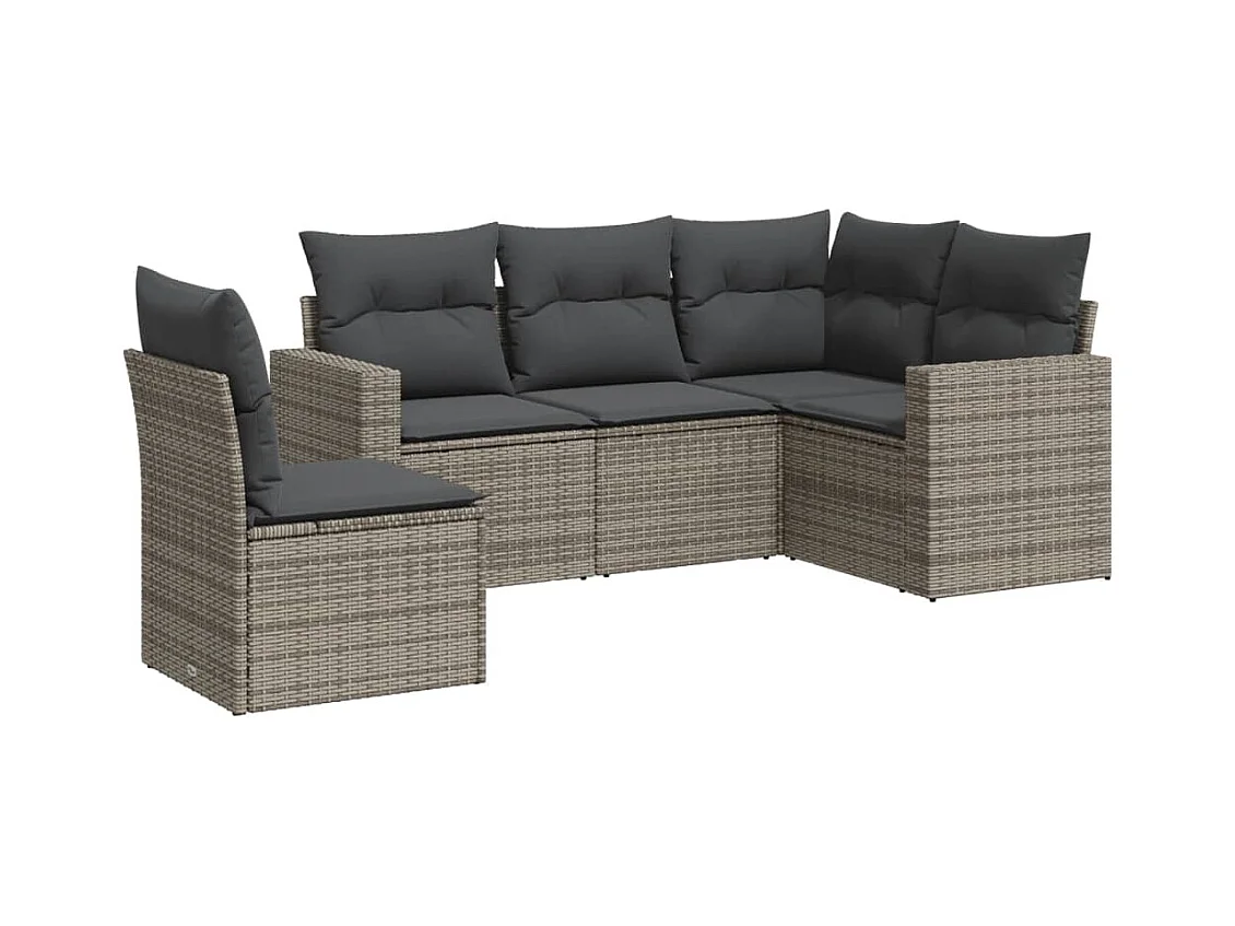 Set Divano da Giardino 5 pz con Cuscini Grigio in Polyrattan