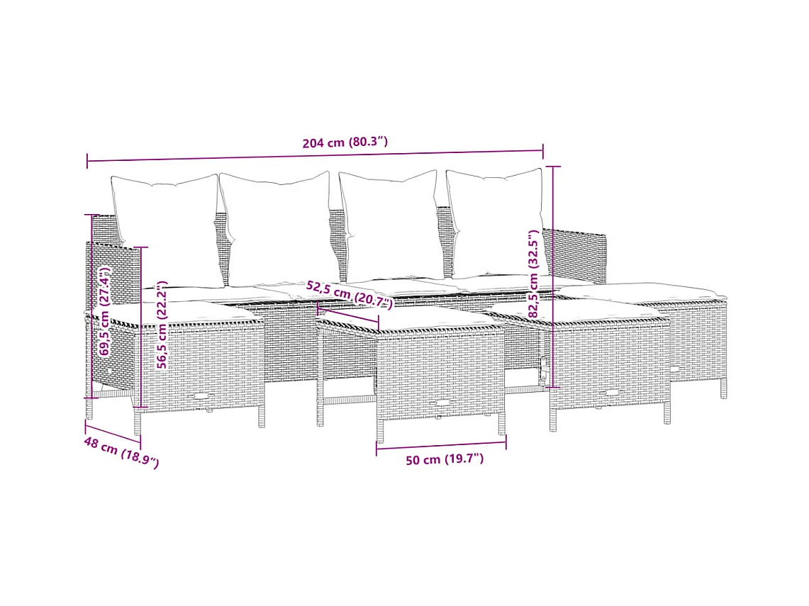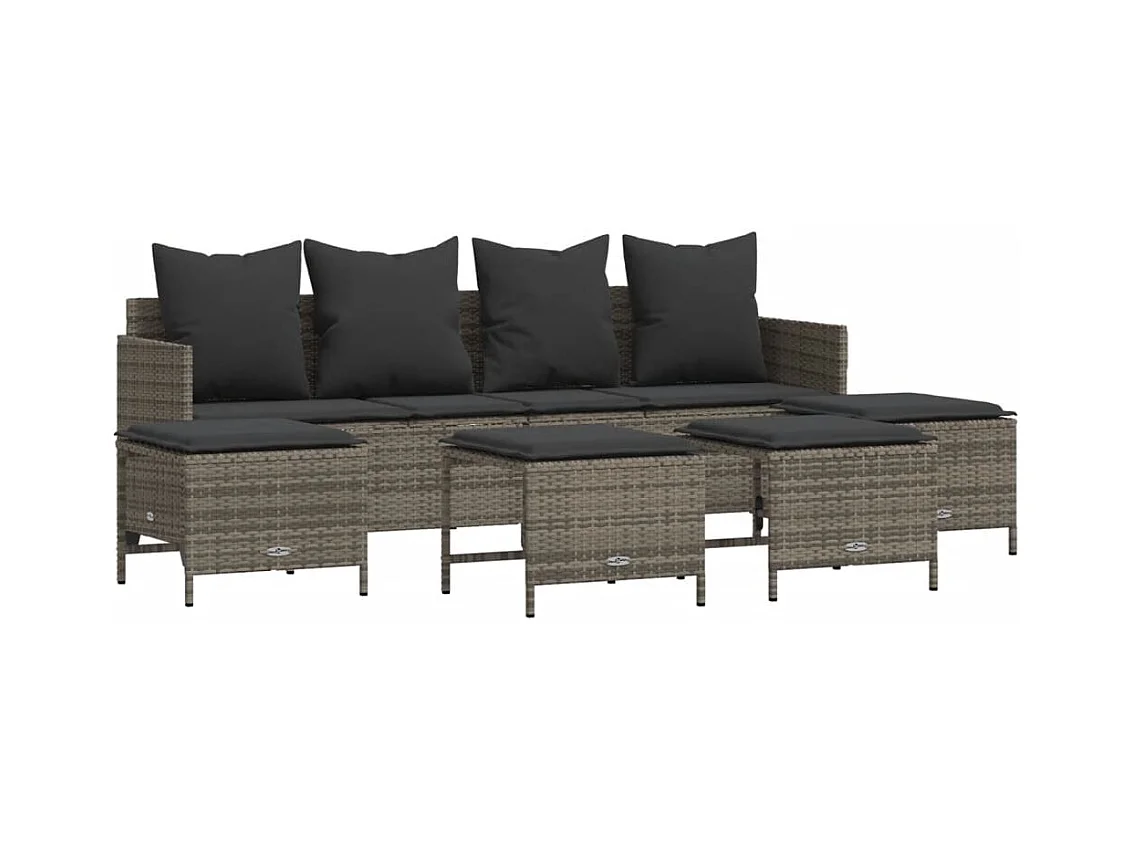 Set Divano da Giardino 5 pz con Cuscini Grigio in Polyrattan