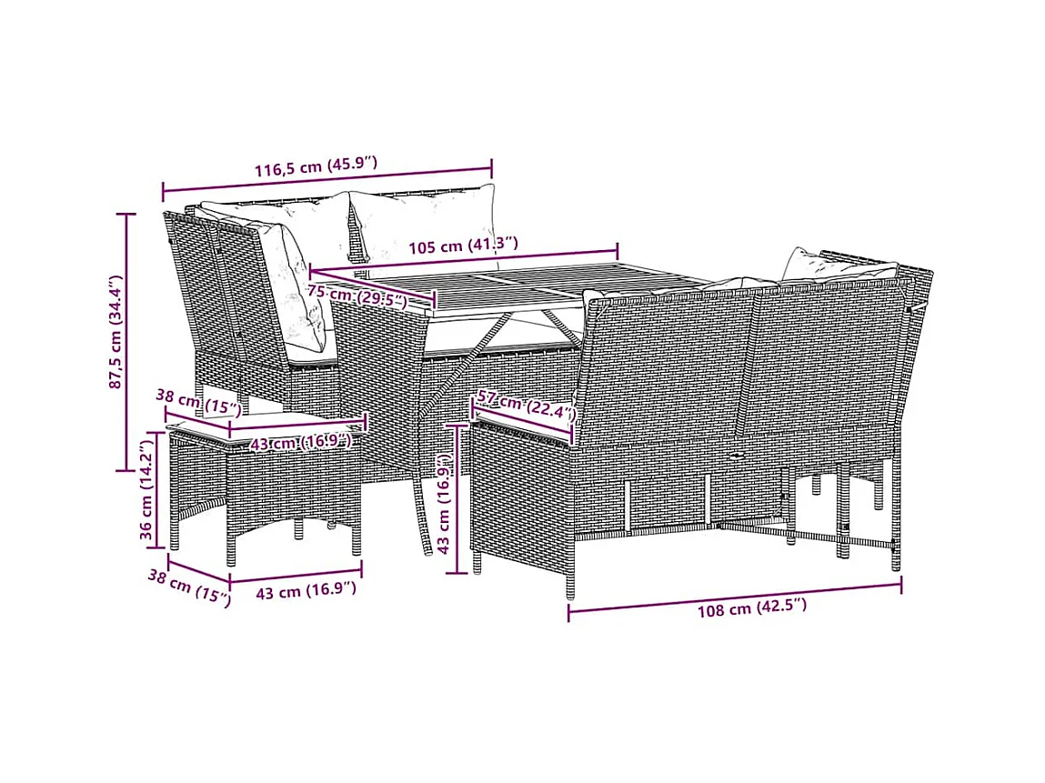 Set Divani da Giardino 5 pz con Cuscini in Polyrattan Grigio