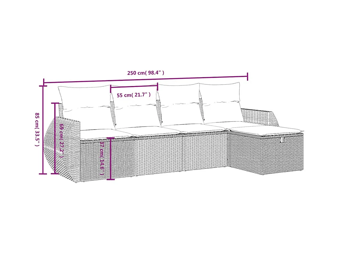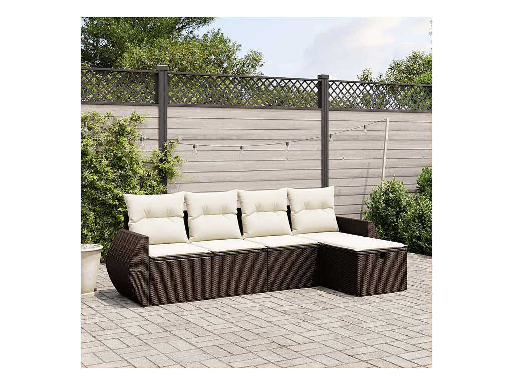 Set Divano da Giardino 5 pz con Cuscini Marrone in Polyrattan