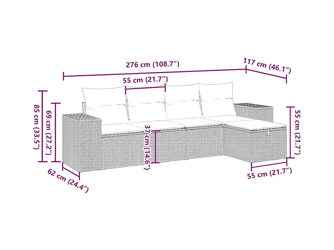 Set Divano da Giardino 5pz con Cuscini Grigio Chiaro Polyrattan