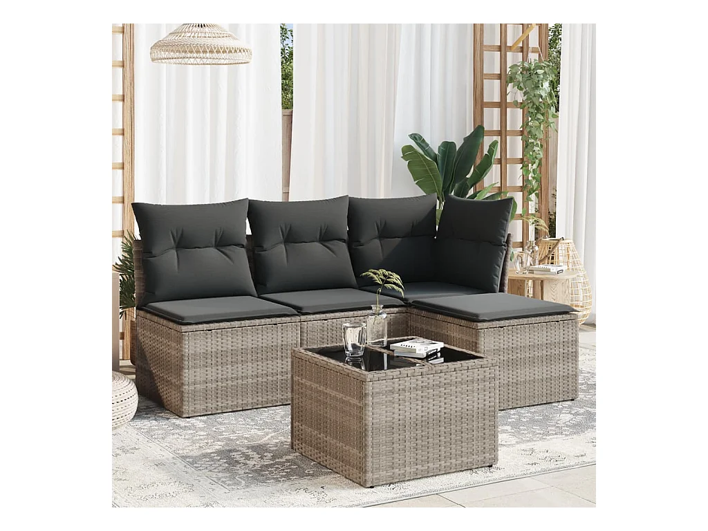 Set Divano da Giardino 5pz con Cuscini Grigio Chiaro Polyrattan