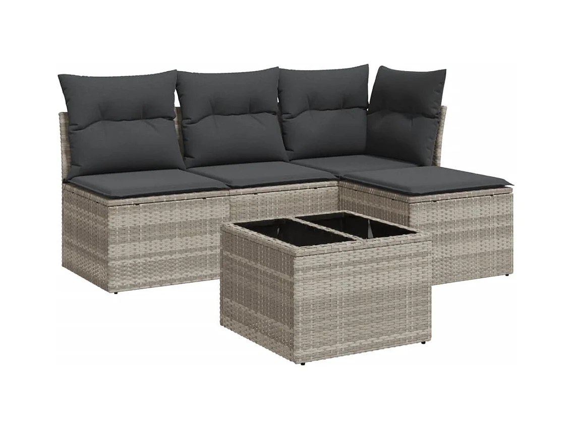 Set Divano da Giardino 4pz con Cuscini Grigio Chiaro Polyrattan