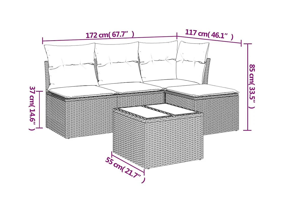 Set Divano da Giardino 4 pz con Cuscini Beige in Polyrattan