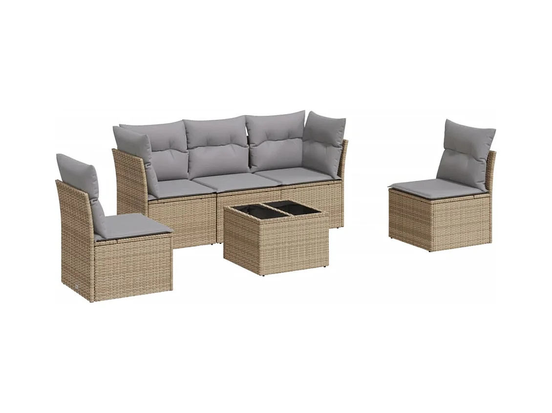 Set Divano da Giardino 6 pz con Cuscini Beige in Polyrattan