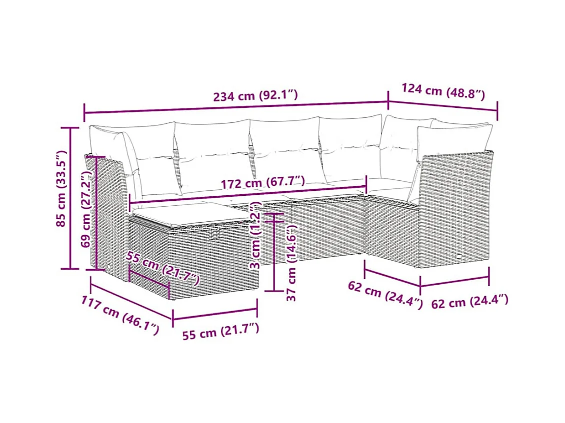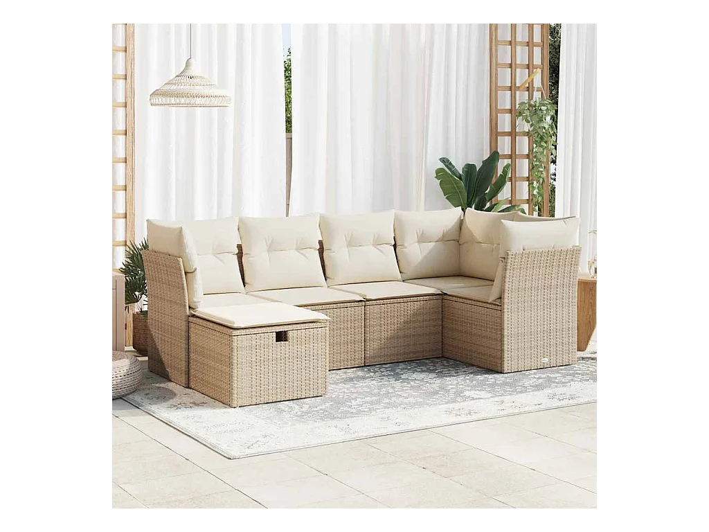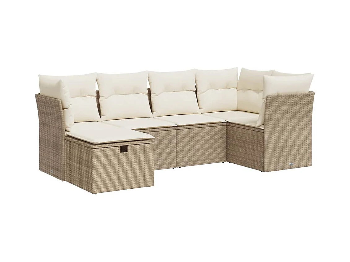 Set Divano da Giardino 6 pz con Cuscini Beige in Polyrattan