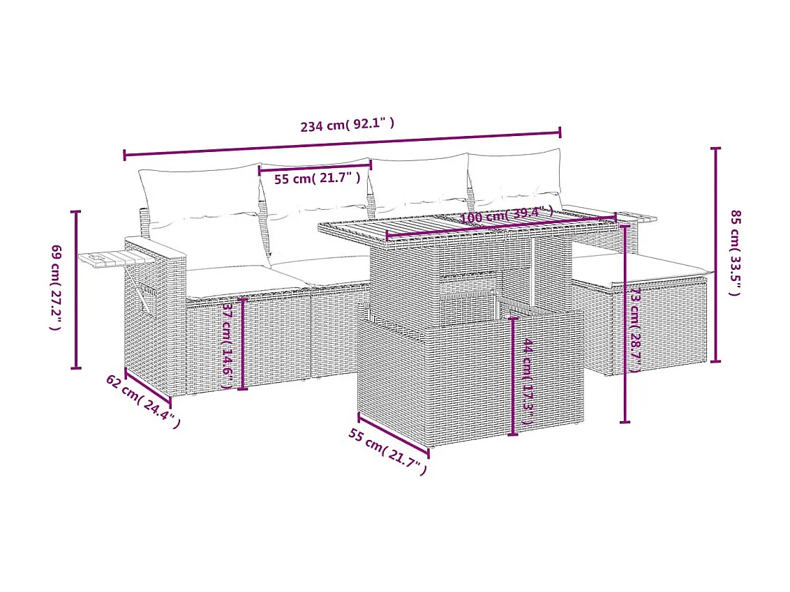 Set Divano da Giardino 6 pz con Cuscini Beige in Polyrattan
