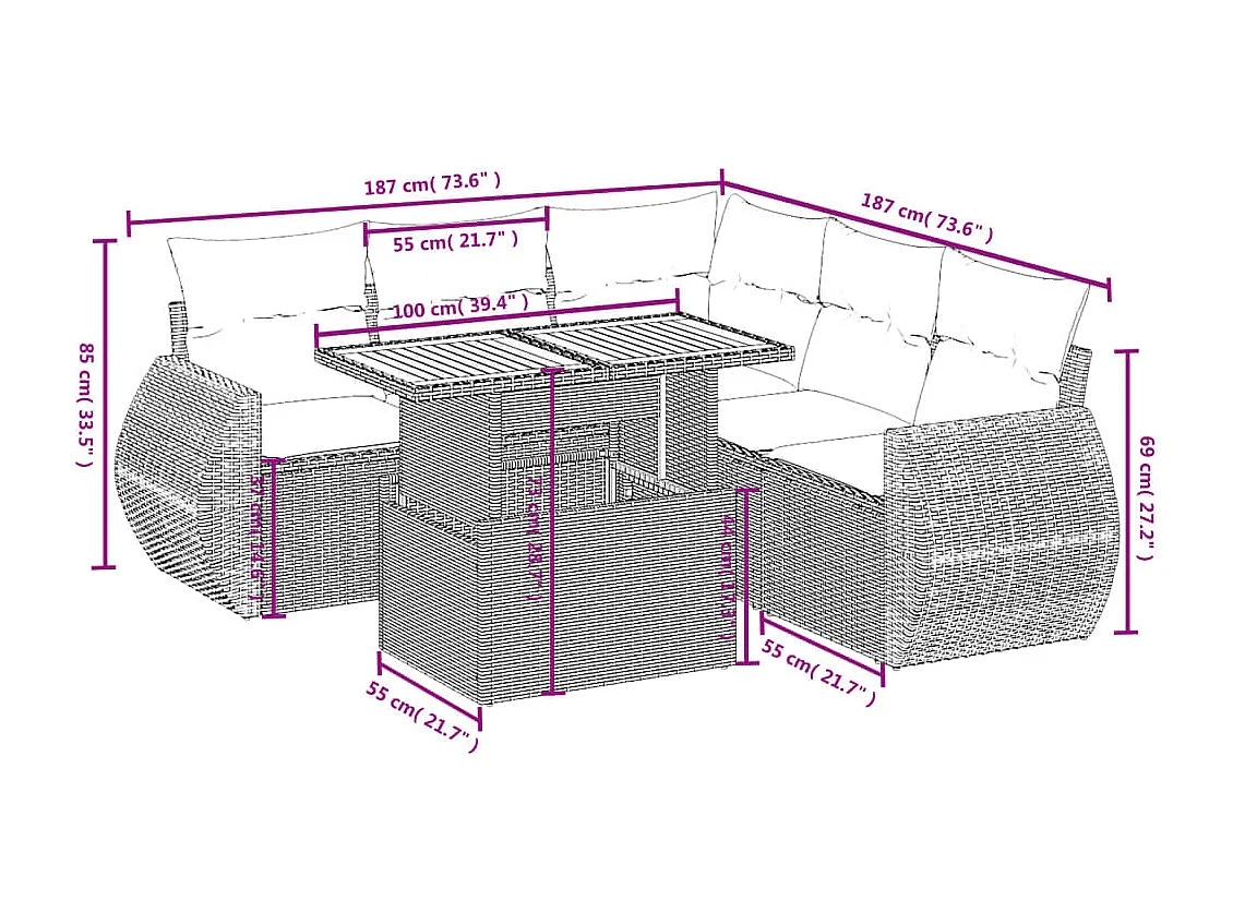 Set Divano da Giardino 6 pz con Cuscini Beige in Polyrattan