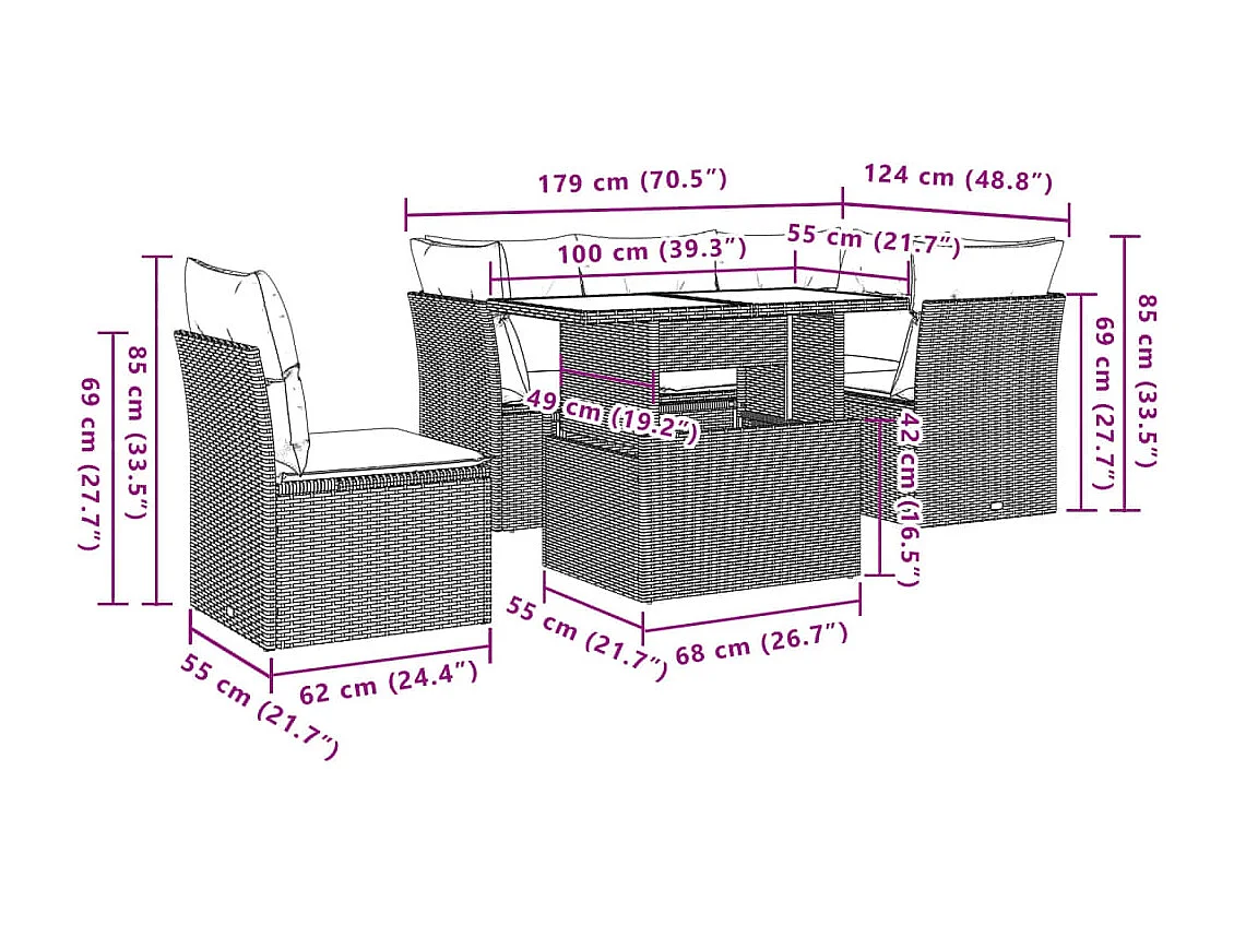 Set Divano da Giardino 6 pz con Cuscini Beige in Polyrattan
