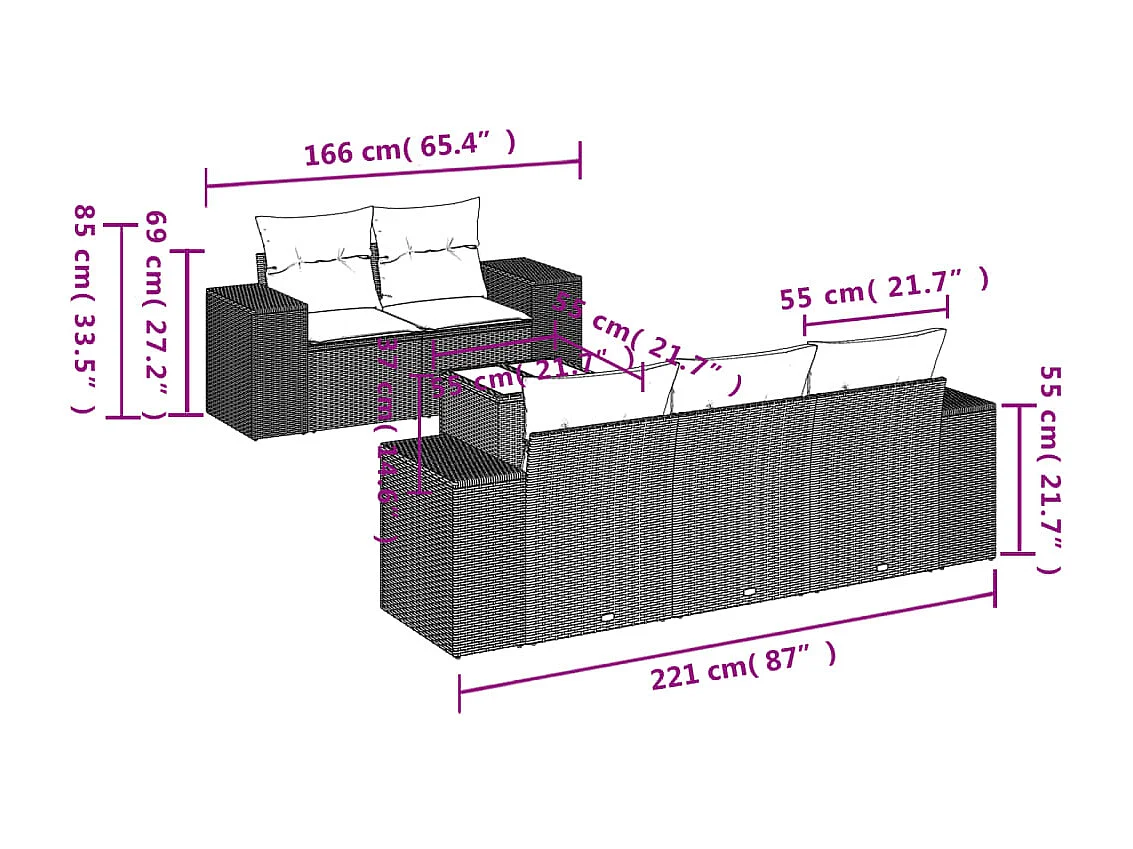 Mobile da giardino con cuscini 6 pz in resina intrecciata beige