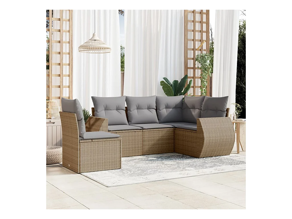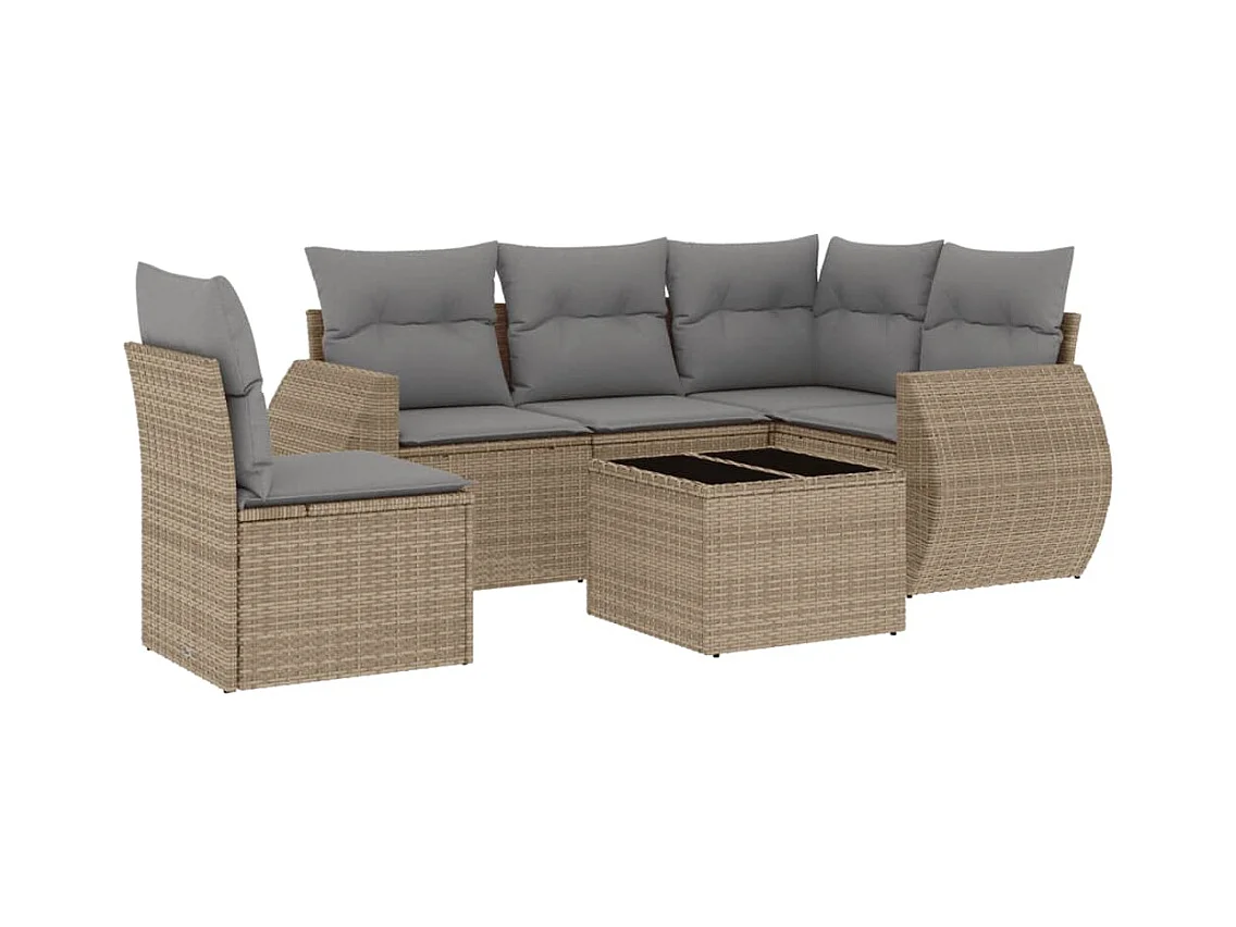 Set Divano da Giardino 6 pz con Cuscini Beige in Polyrattan
