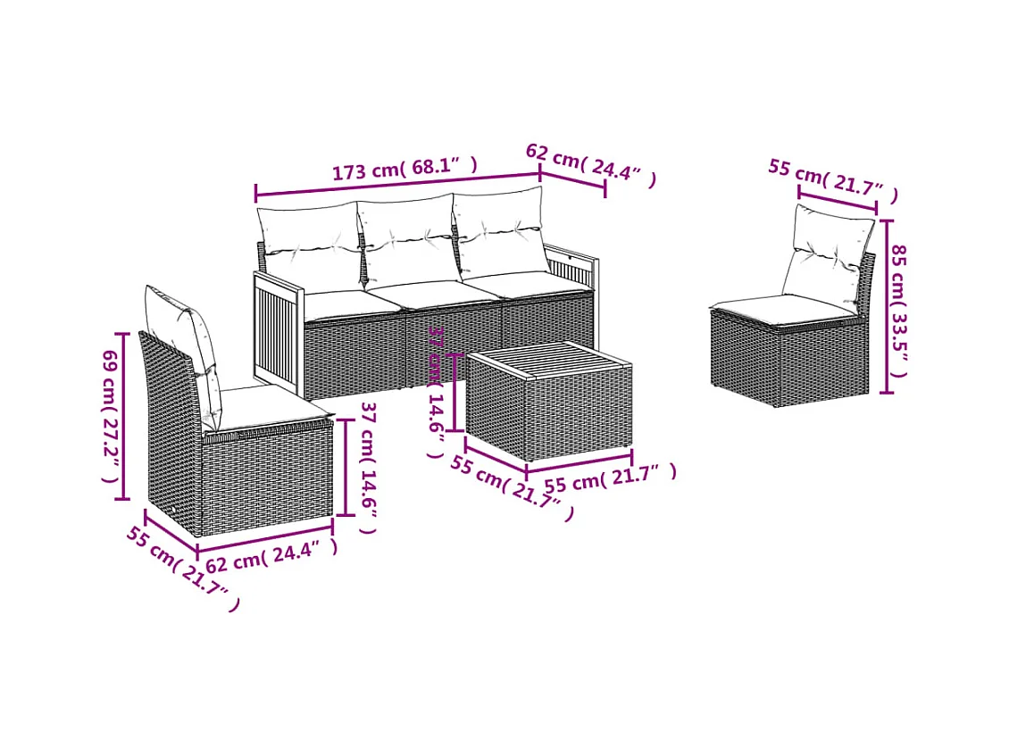Set Divano da Giardino 6 pz con Cuscini Grigio in Polyrattan
