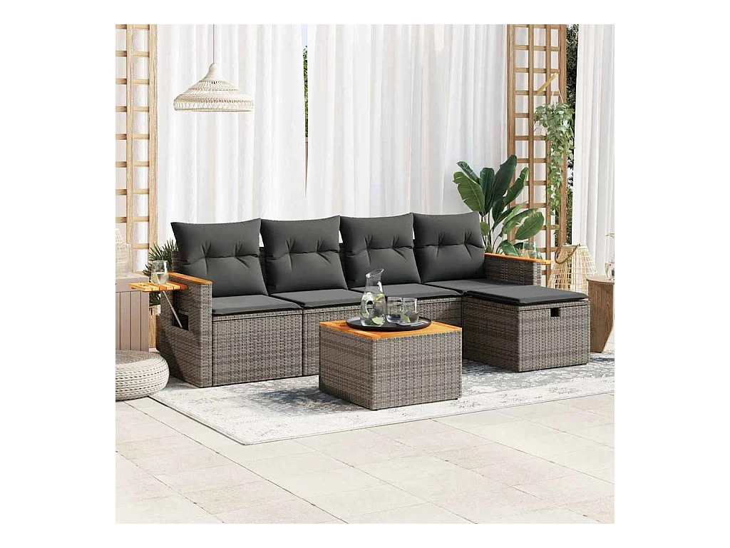 Set Divano da Giardino 6 pz con Cuscini Grigio in Polyrattan