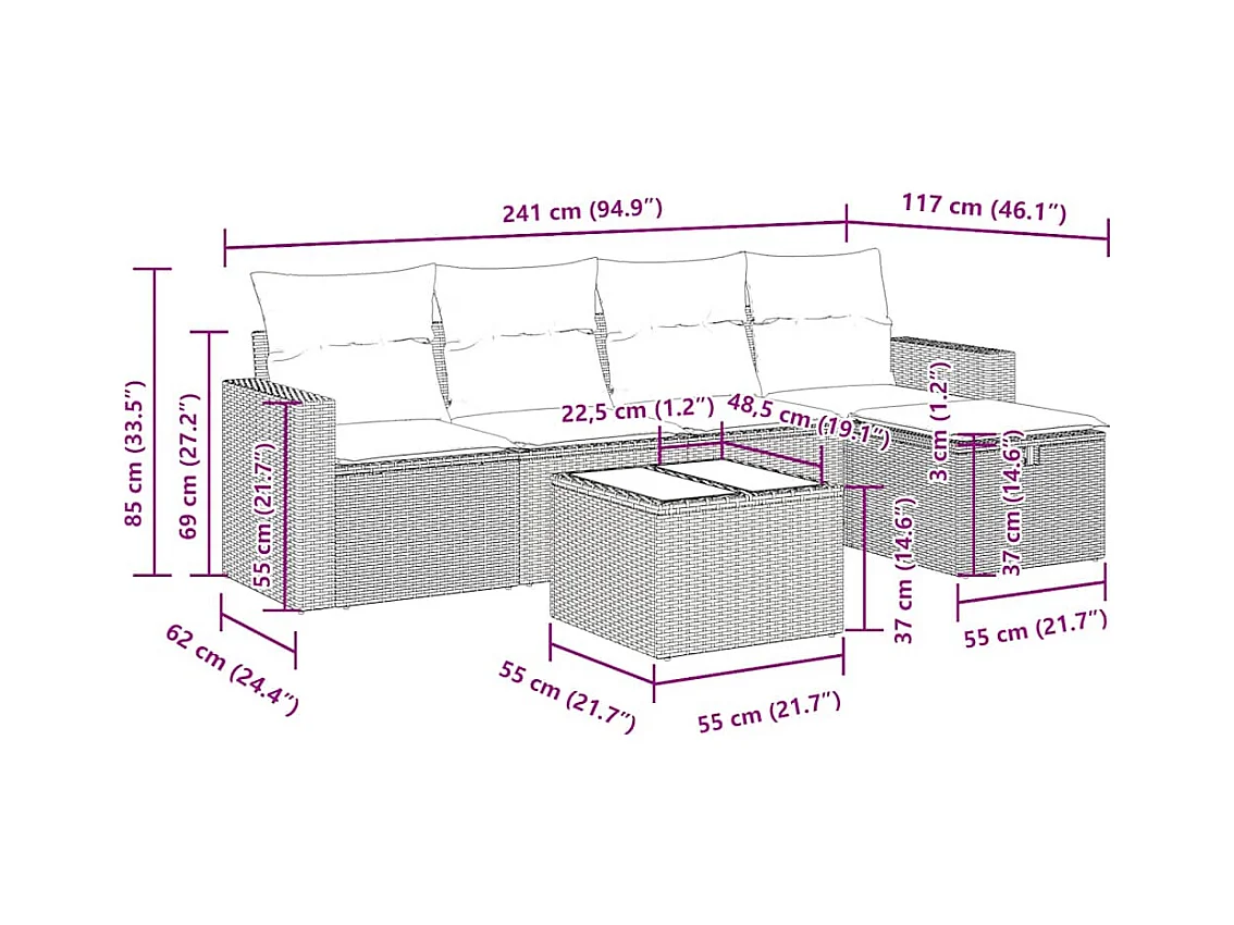 Set Divano da Giardino 6pz con Cuscini Grigio Chiaro Polyrattan