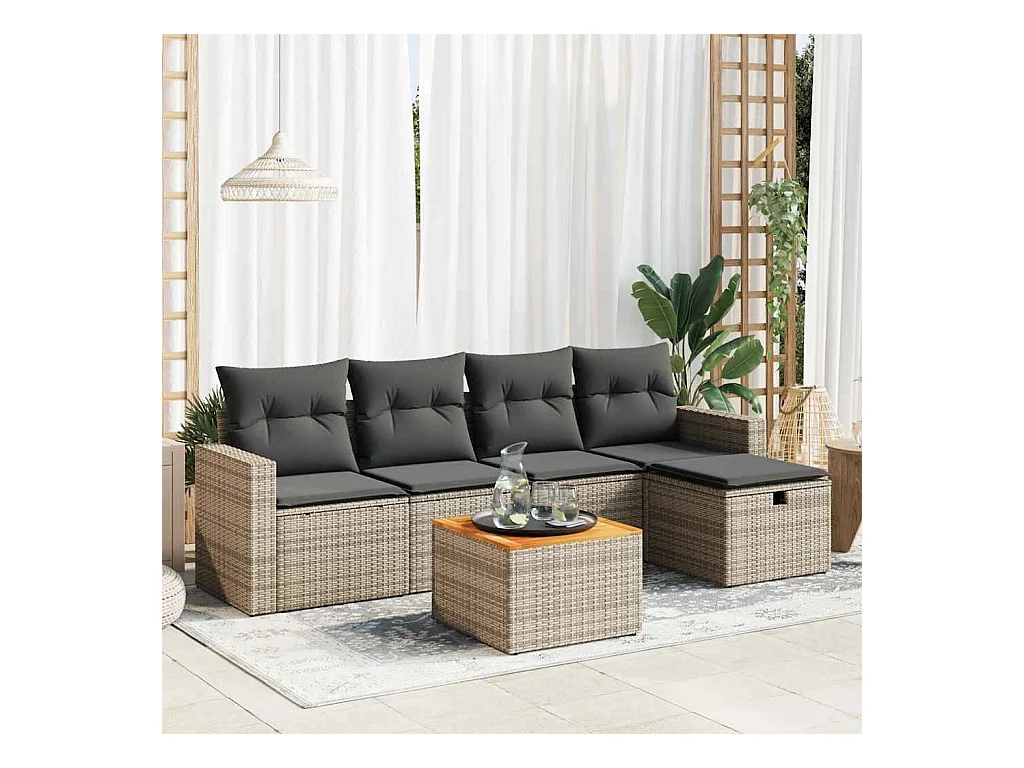 Set Divano da Giardino 6pz con Cuscini Grigio Chiaro Polyrattan