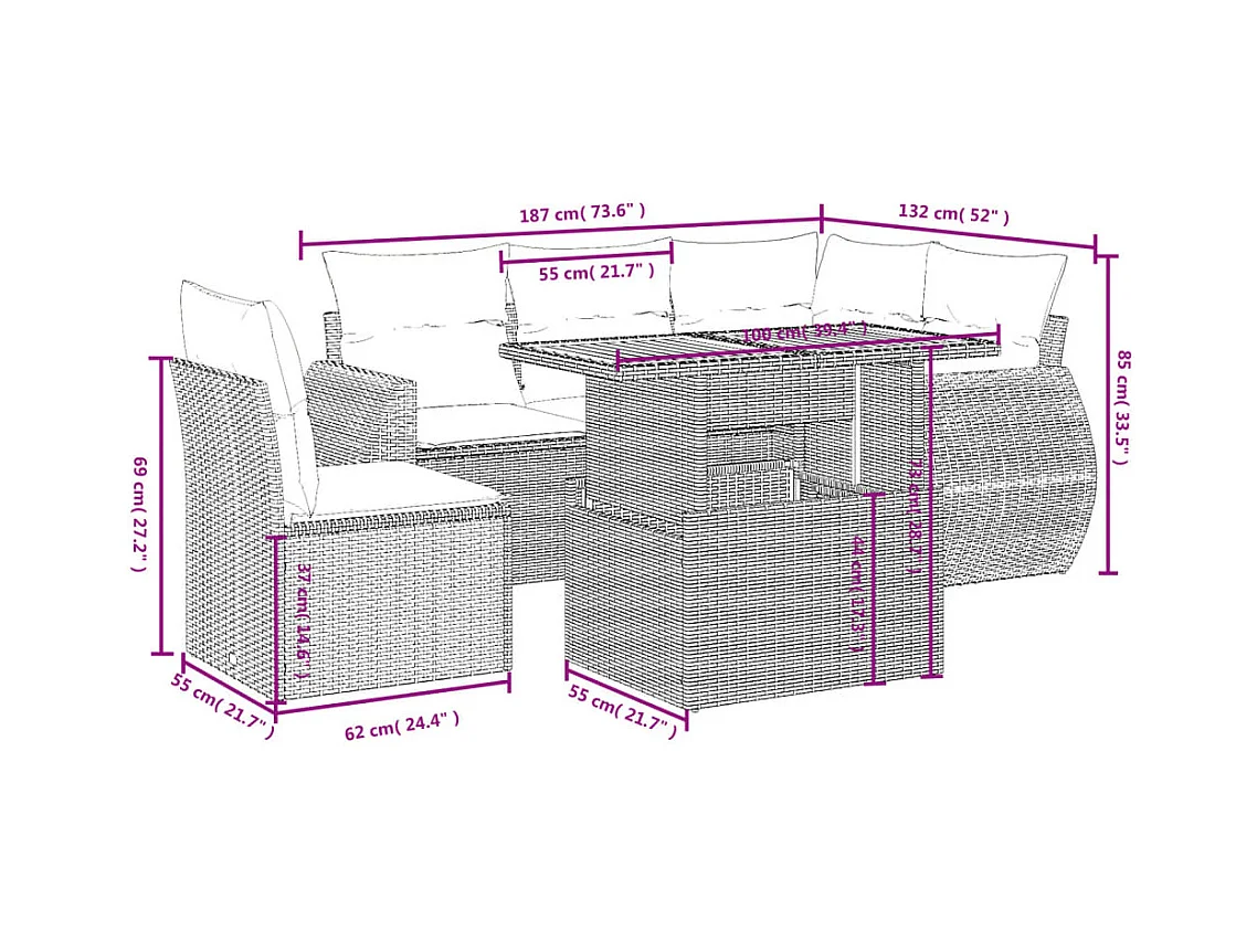 Set Divano da Giardino 6 pz con Cuscini Grigio in Polyrattan