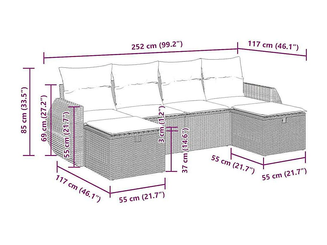 Set Divano da Giardino 6 pz con Cuscini Grigio in Polyrattan