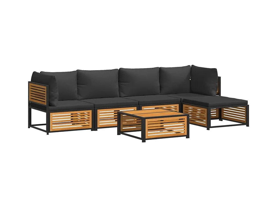 Set Divano da Giardino 6 pz con Cuscini in Massello di Acacia