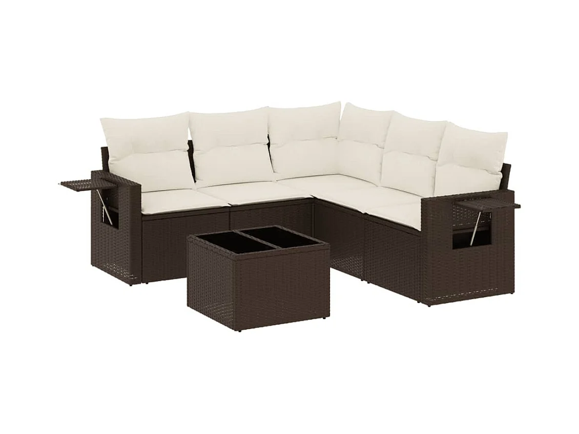 Set Divano da Giardino 6 pz con Cuscini Marrone in Polyrattan
