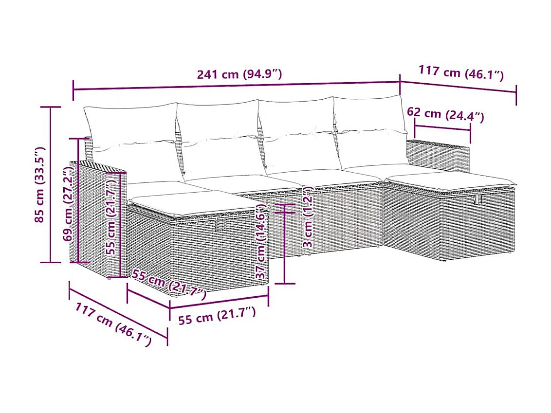 Set Divano da Giardino 5 pz con Cuscini Marrone in Polyrattan