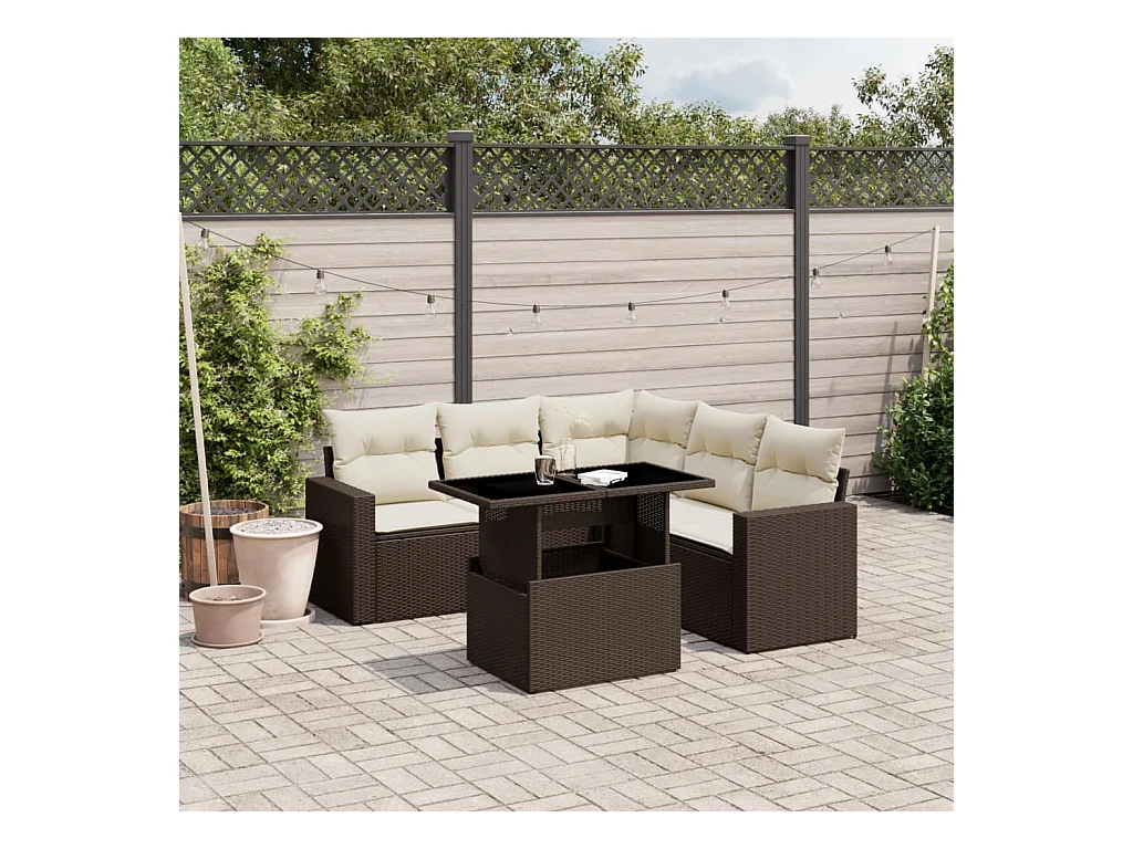 Set Divano da Giardino 6 pz con Cuscini Marrone in Polyrattan