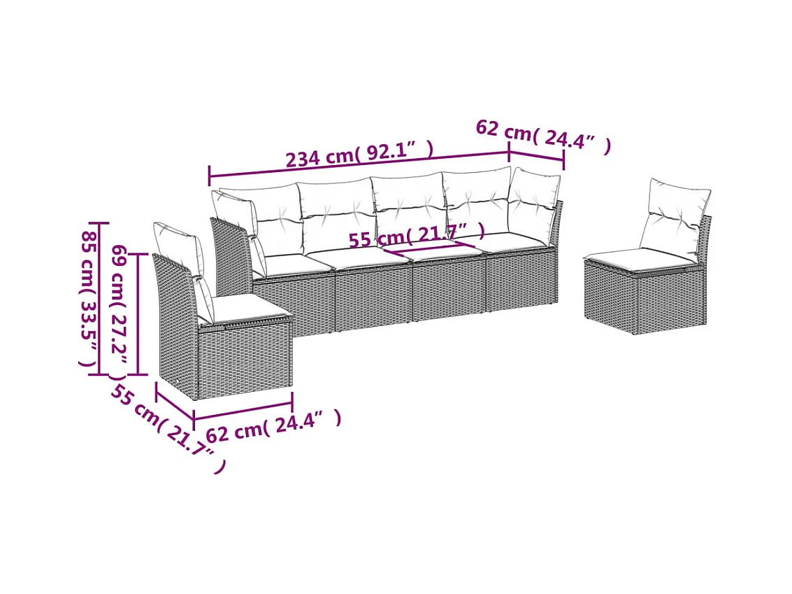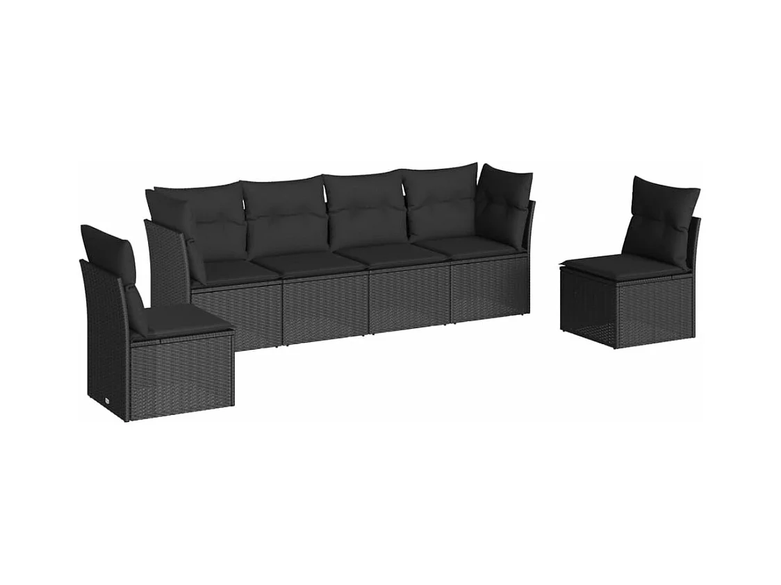 Set Divano da Giardino 6 pz con Cuscini Nero in Polyrattan