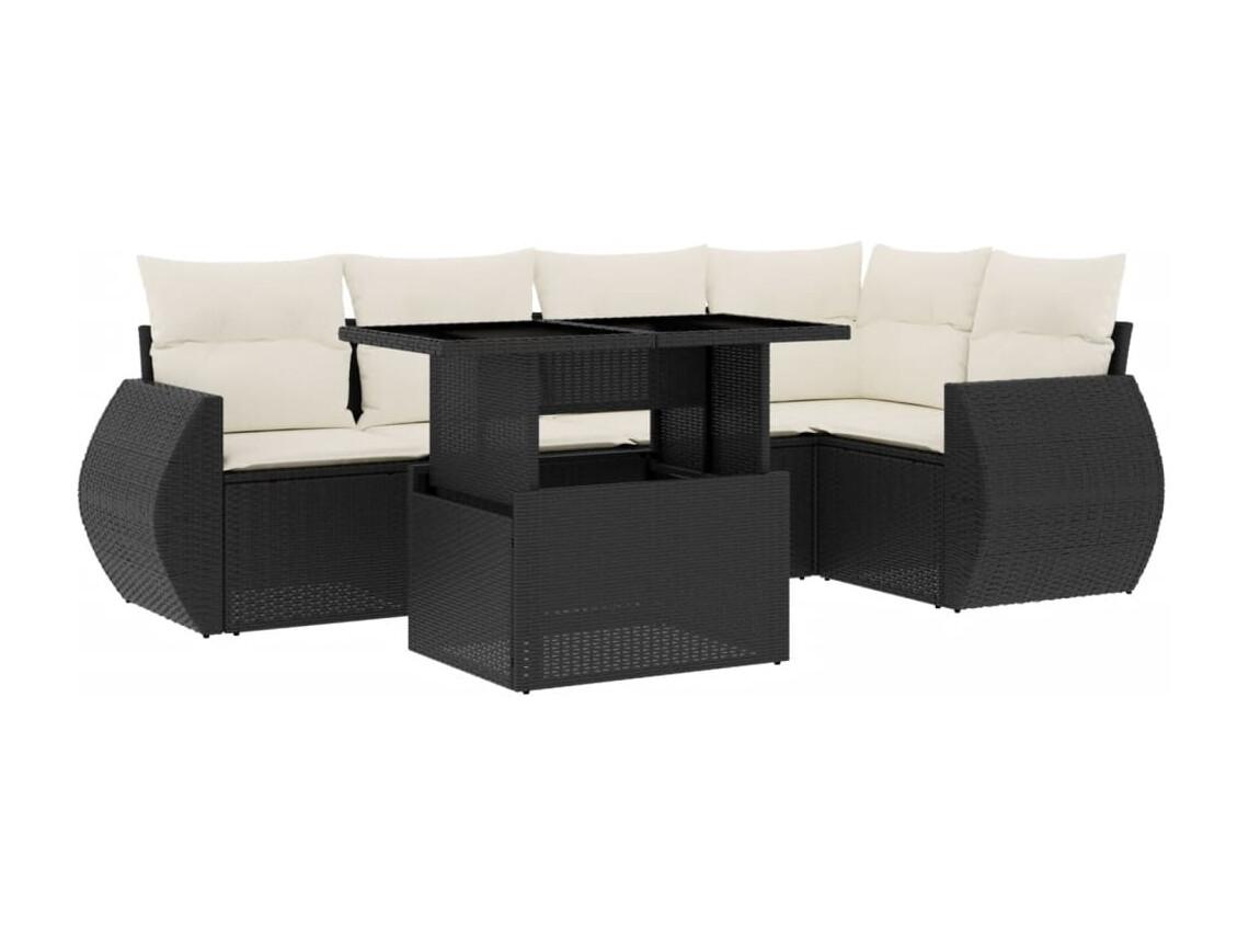Set Divano da Giardino 6 pz con Cuscini Nero in Polyrattan