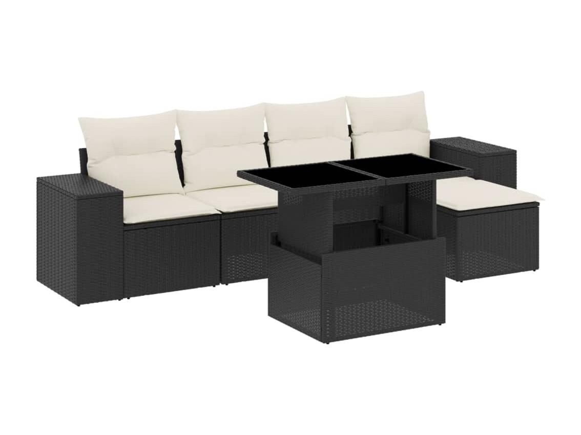 Set Divano da Giardino 6 pz con Cuscini Nero in Polyrattan