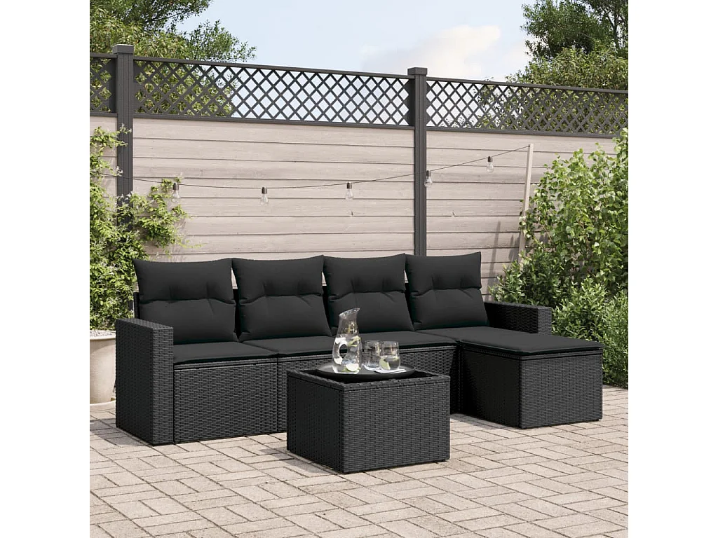 Mobili da giardino 6 pezzi con cuscini in resina intrecciata nera
