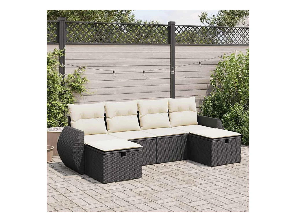 Set Divano da Giardino 6 pz con Cuscini Nero in Polyrattan