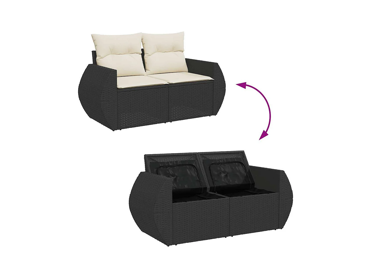 Set Divani da Giardino con Cuscini 7pz Nero Polyrattan
