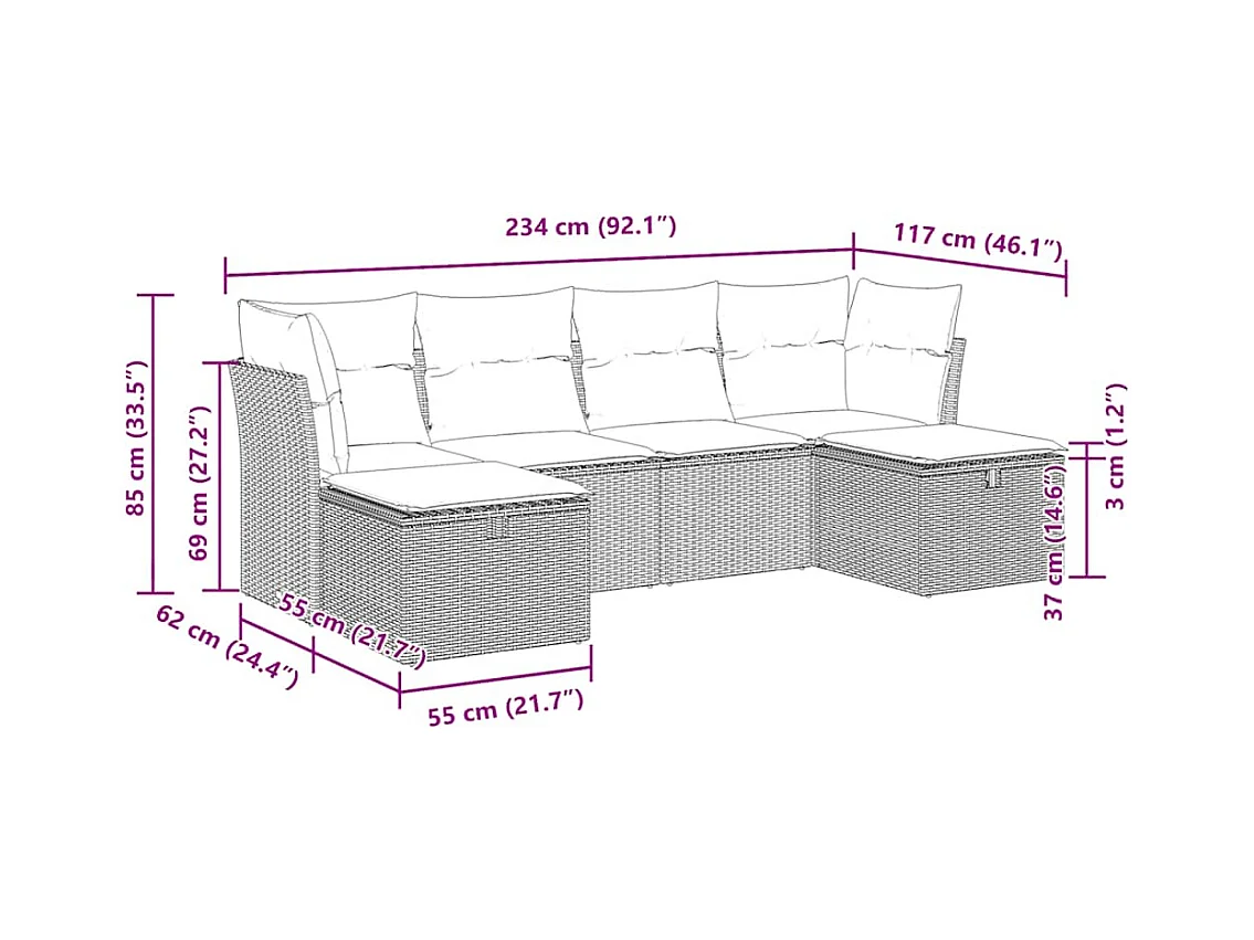 Set Divano da Giardino 6 pz con Cuscini Nero in Polyrattan