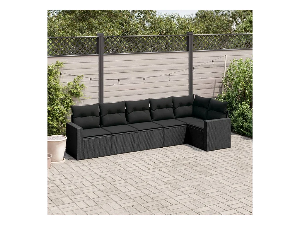 Mobili da giardino 6 pezzi con cuscini in resina intrecciata nera