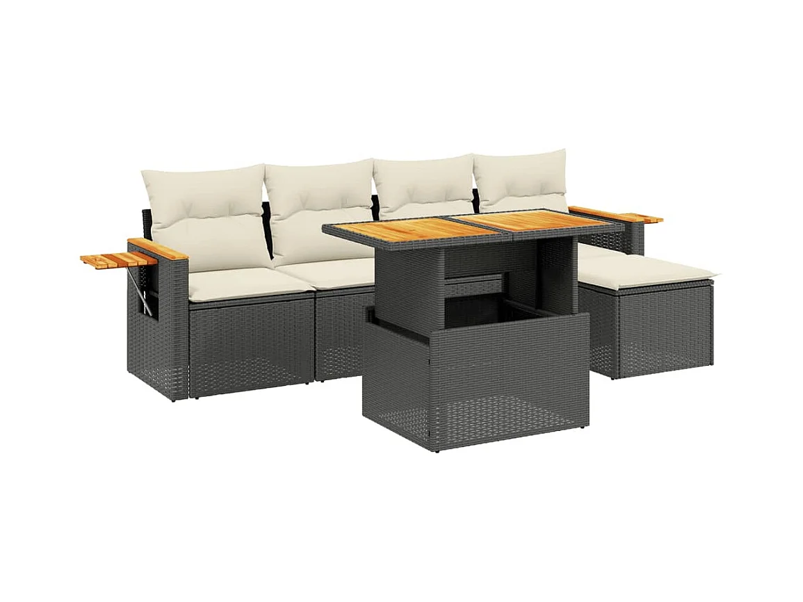 Set Divano da Giardino 6 pz con Cuscini Nero in Polyrattan