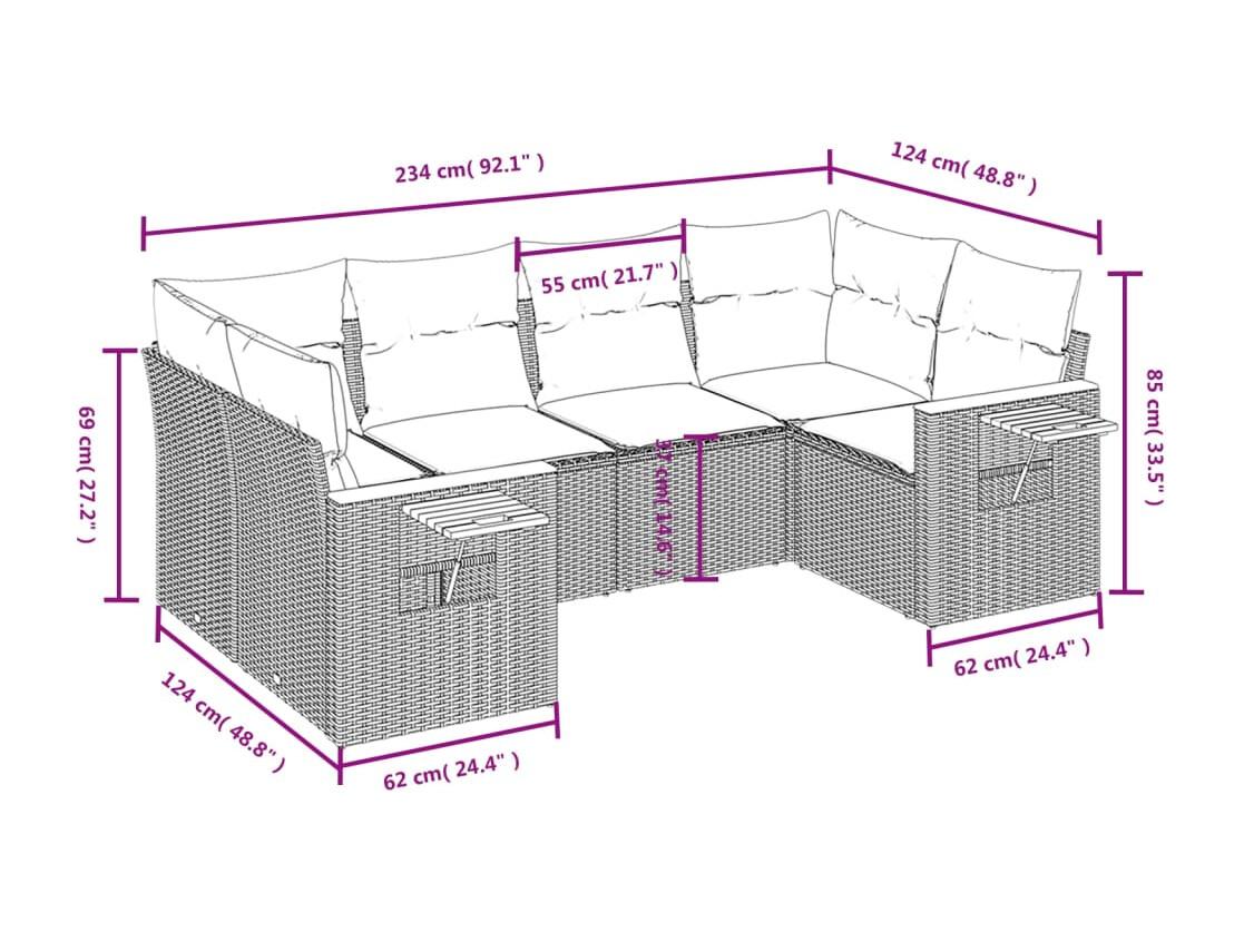 Set Divani da Giardino con Cuscini 7pz Nero Polyrattan