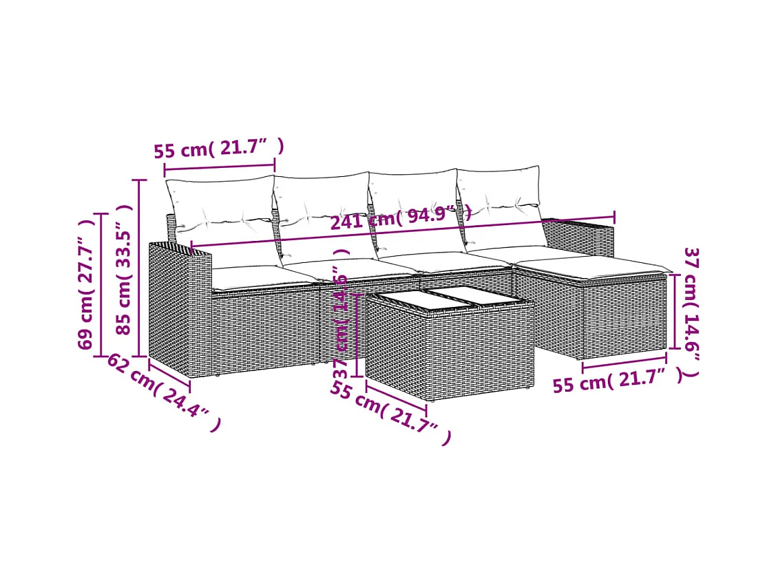 Set Divano da Giardino 6 pz con Cuscini Nero in Polyrattan
